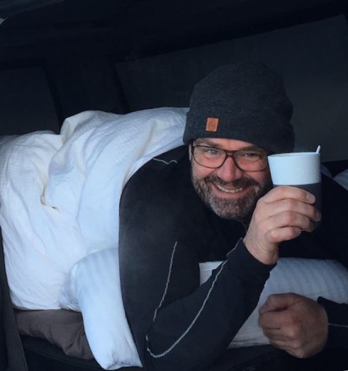 Das Leben kann so einfach sein. "Bossi" (so ist unser Chef tatsächlich im Handy unseres Produktionsleiters gespeichert) ist im Glück, wenn er mit seinem Bulli unterwegs sein kann. Er umrundet seit vier Wochen die iberische Halbinsel, isst gut, schläft gut und liebt es, den ersten Kaffee im Bett bei offener Heckklappe mit Blick auf's Meer zu trinken.